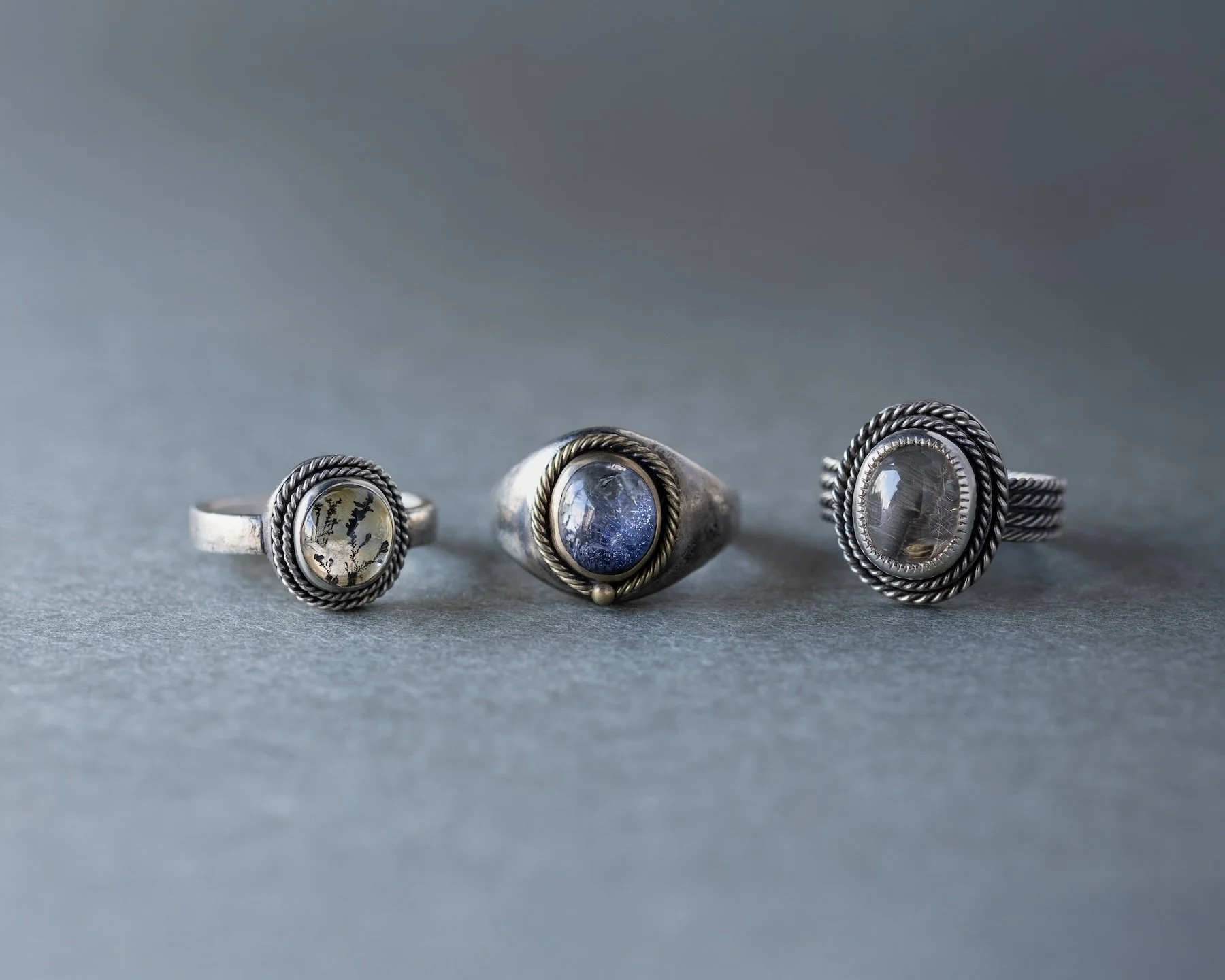 新作や天然石を使った一点ものなど。この展示に向けて新たにご覧いただけるアイテムをご用意しました。